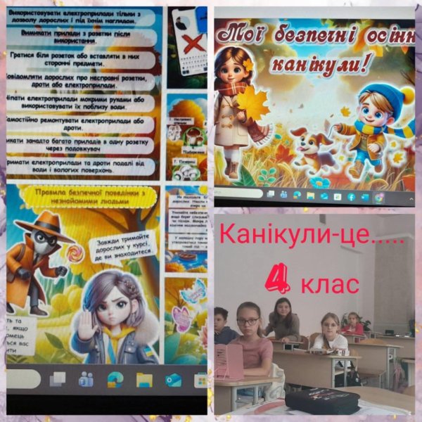 Педагоги разом з дітьми обговорили правила дорожнього руху, поведінки біля водойм, на вулиці, у побуті, а також питання пожежної та протимінної безпеки. Особливу увагу приділили інформаційній безпеці та діям у надзвичайних ситуаціях. Учні активно брали участь у тематичних вікторинах, практичних вправах, переглядали навчальні відеоролики й створювали власні пам'ятки "Мої правила безпеки на канікулах". Канікули — це час відпочинку, нових вражень і яскравих емоцій, але найголовніше — час бути уважним і обережним! Бережімо себе і своїх близьких!